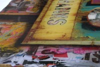In mijn recente werken toon ik dit universum middels jeugdiconen en snapshot fotografie van alledaagse situaties uit diverse culturen die geïsoleerd een vervreemdend effect hebben op dikke lagen bilboards die ik uit grote steden “roof” . Dit zijn bijna dierlijke sporen die de mens achterlaat in zijn poging tot het vestigen van aandacht in de “Urban jungle”.