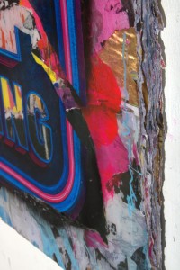 In mijn recente werken toon ik dit universum middels jeugdiconen en snapshot fotografie van alledaagse situaties uit diverse culturen die geïsoleerd een vervreemdend effect hebben op dikke lagen bilboards die ik uit grote steden “roof” . Dit zijn bijna dierlijke sporen die de mens achterlaat in zijn poging tot het vestigen van aandacht in de “Urban jungle”.